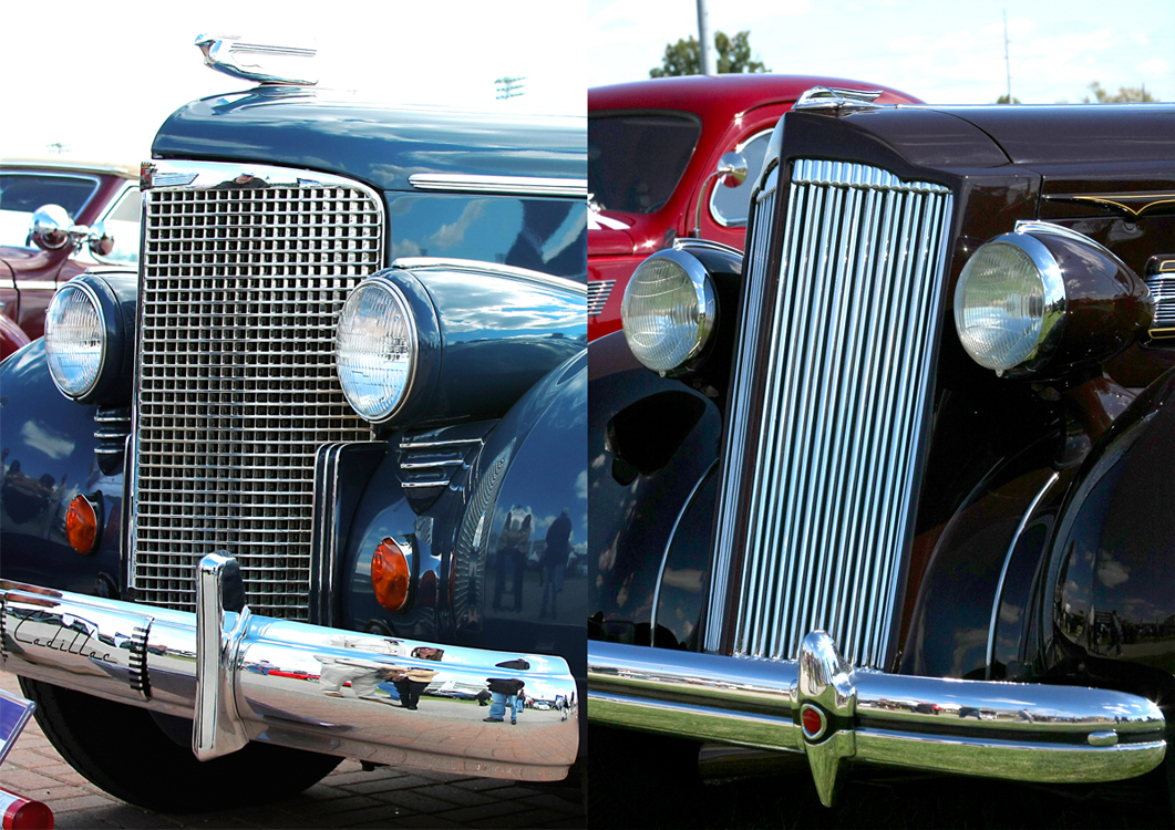 A 1938 Cadillac is shown on the right and a 1935 Packard (similar to a 1938 model) is shown on the right. This image montage is included for visual reference to some of the text below. Photos by the author.